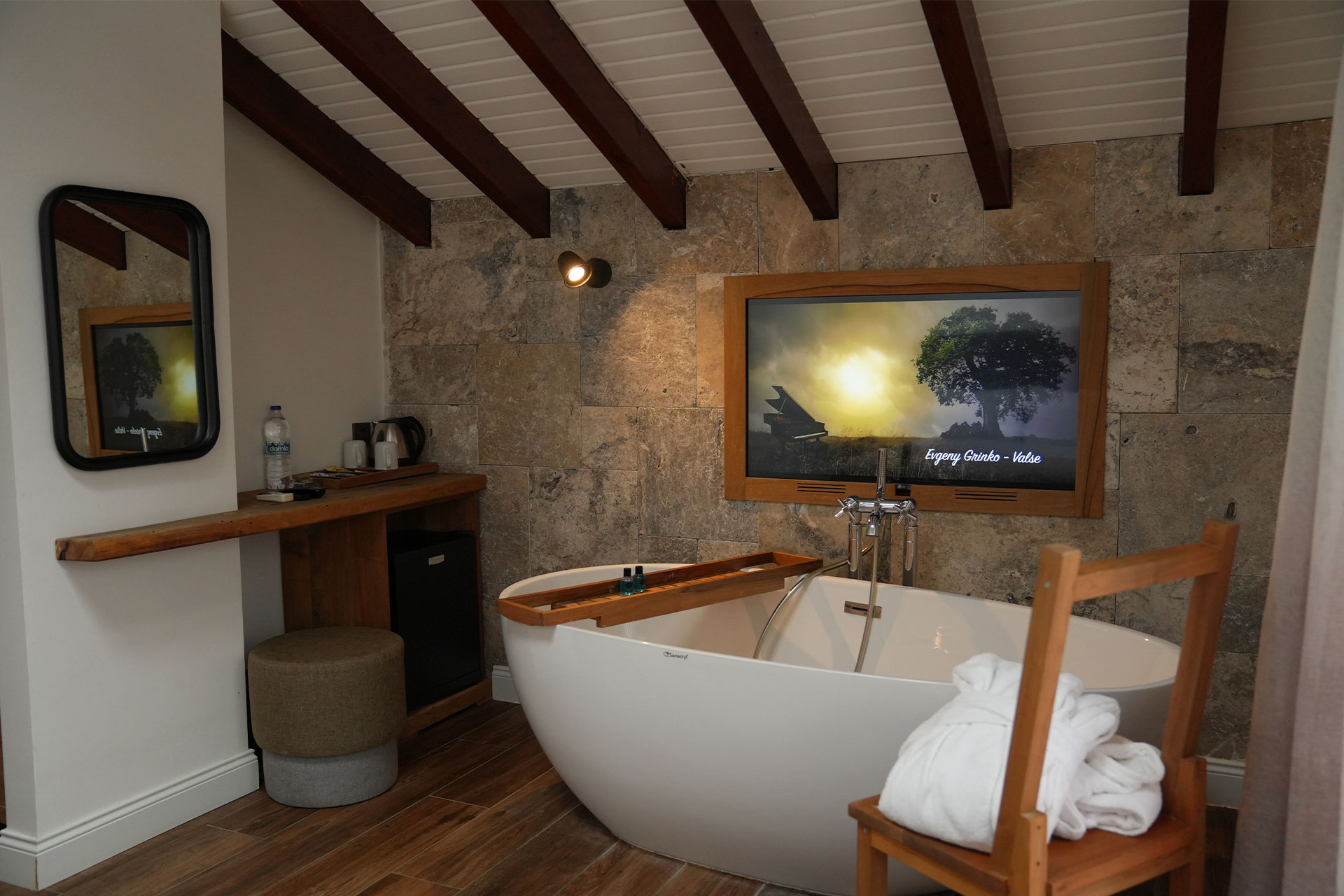 Çatı Delux odalarımız 36m2’dir ve balkonludur. Aynı zamanda bu odalarımız çatı panaromik camlıdır. Hem bahçe hem de gökyüzü manzaralıdır. Yeni tasarlanan odalarımızda küvet bulunmaktadır.